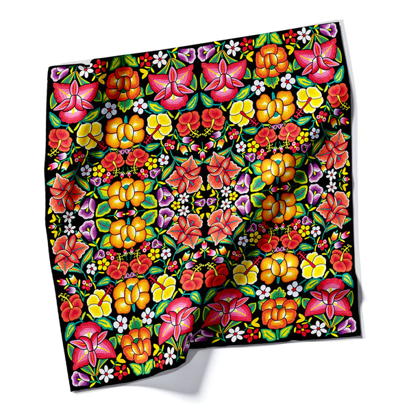 Textil teñido, tipo seda, inspirados en el folklore y cultura del estado de Oaxaca.