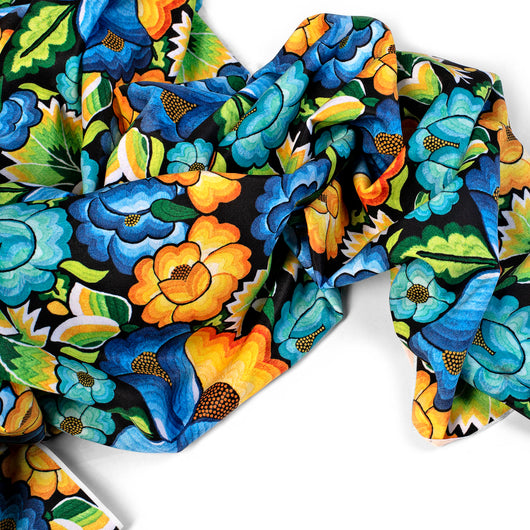 Textil teñido, tipo seda, inspirados en el folklore y cultura  del estado de Oaxaca.